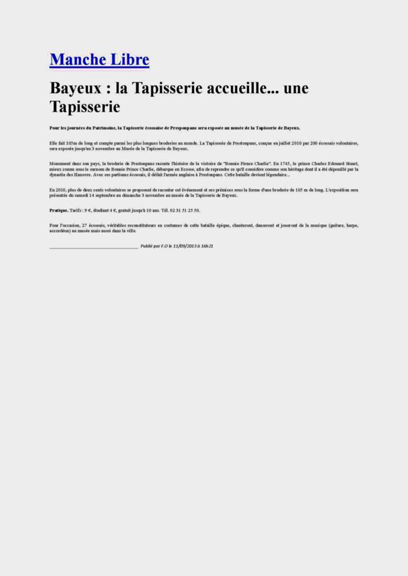 Bayeux: 'La' Tapisserie acceuille 'Notre' Tapisserie!