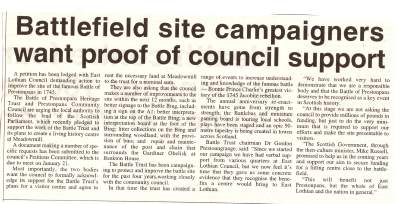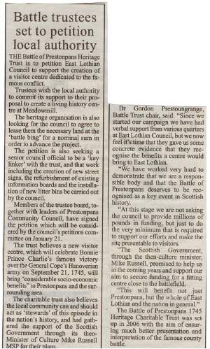 Subject of Petition: The Better Conservation, Interpretation & Presentation of the Battle of Prestonpans 1745 - to be considered in Haddington January 21st 2010
