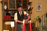 After Burke's talking, the Barons, their Ladies, Youngers and guests were ready to sample the hospitality of the Caput, with a generous accompaniment of pipes from Prestonpans and District Pipes and Drums led by Jimmy King. The full programme for the day was elegantly set down and all attending were invited to sign the souvenir edition. Camilo, Baron of Fulwood and of Dirleton, had graciously struck a commemorative coin, and the Head Brewer Craig Allen had created a special Barons' Porter for the evening.