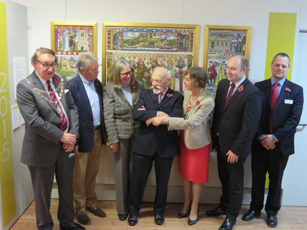 One in particular is now completed and was unveiled on November 7th in Northampton. It relates in its central panel the Grant of Royal Charter to the ancient city and around the edge a series of panels depicting each century since. Gillian Lindsay is third from left below.