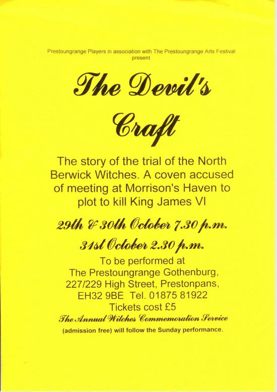 Each year since the Barons' Courts pardonned all 81 so called Witches put to death in The Pans the Prestoungrange Players have presented a play by Roy Pugh. There are three in the cycle and many will now be familiar with their treatment of the theme.