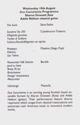 'During The Fringe, the Tapestry is but one of the many excellent attractions offered at the cathedral. The Anna Frank Touring Exhibition hangs in the southern trancept. And every day of the week throughout August a concert is given. On Augst 10th it is played at lunchtime by Sharon Dowsett flute and Adele Neilson guitar. It is beautifully presented.