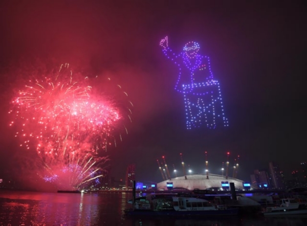 Capt. Sir Tom ill-depicted as a drone … … though his tale has been endlessly repeated elevating him not only to the knighthood but to war hero status - which he never ever claimed. He served as everyone did and saw limited action in Burma. His elevation by the public was one of life's great surprises for him and the rest of us; but it gave many across the nation the opportunity to express their support through his 100 circuits of the back yard for the hard working staff in the NHS that would be more helpful than banging saucepans outside our front doors on Thursdays. There is an ever present danger that the deification of the NHS per se which was also recalled via the drones above the Millenium Dome in London can obscure its monumental shortcomings throughout the pandemic not least at its interface with social care. But those programmed drones are a mighty clever confection long time worthy of Dr Who, and we must increasingly expect to see them around with messages we can't avoid seeing. They were airborne in Edinburgh too but wisely avoided political comment.