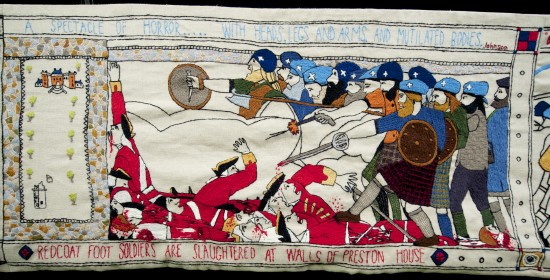 How can the Trust ever say a big enough Thank You to 200+ stitchers who donated 25,000 hours of their skilled craft to creating this extraordinary work of art known as The Prestonpans Tapestry? It never can really, but it can and will honour each one by name and stitcher's tag in perpetuity, and the story of how this gigantic project was accomplished has also now been recorded in the media and in the official 272pp full colour Guidebook published by Burke's Peerage.