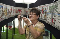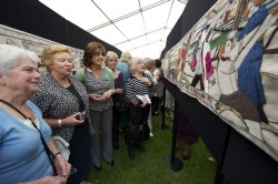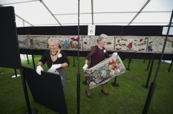 But there was something immediate that the Trustees knew they could and should do, which responded to a repeated wish stitchers expressed - everyone wanted to see the entire 104 panels sewn together when it was all complete. And the Trustees believed this should be up front, at a pre-launch 'private viewing' just for them and their immediate family members and friends, who had watched and waited and shared in the embroidery time, those 25,000 hours, those 10 million stitches, across the nation and around the world. And Yes, it had to be in Prestonpans!