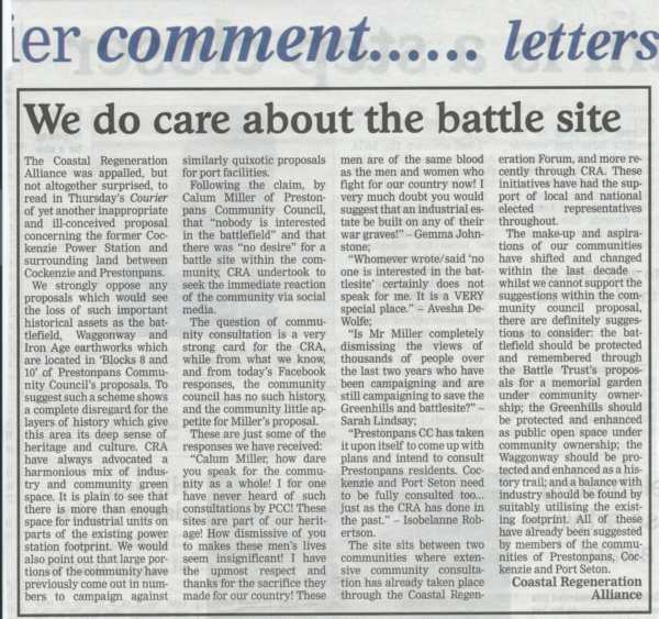 The Coastal Regeneration Alliance and the Battle Trust take to the Courier's Letters Page!