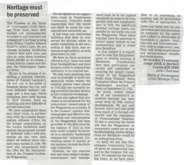 As well as the Petition, as can be seen below, 'Letters' are being written from The Front to the East Lothian Courier too ...