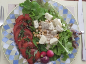 The cheese is made comme disques ronds each between 40 cm and 70 cm in diameter and some 10 cm in height. Comté is well known for its distinct terroir, its particular smell and taste that is derived from the immediate local environment and its traditional methods of production [like Jersey Royal* new potatoes peut-être?] Its terroir has several causative factors from the 160 village-based fruitières in their province owned by farmers who bring their own milk from their cows. Strict production rules link place and product and the seasonal environmental effects. Because of its uniqueness and unfamiliarity Comté cheeses go through the process of Jury Terroir with panels of trained volunteer tasters from Comté supply chain created by food scientist Florence Bérodier. The Jury enabled Comté cheese to achieve world renown with improved quality but the challenge remains to create a uniform taste since there were 160 different fruitières. Nevertheless through the Jury among the tasters there's now improved ability to perceive and share the variations. Our supplies came from our 'alternative' outing; if not Peterborough let's go to Towcester, scene of Boudicca's defeat by the Romans in AD61 but not before she had destroyed Colchester, St Albans and London first! There at Hartwell's Deli it was available in several tastes but even more exciting Taylor's Original Mustard was available as 100/ 200grms. As all the family now knows it was Britain's first ready made mustard from Taylor's in Newport Pagnell, clearly a vital local delicacy! I also visited Waitrose in an unsuccessful search for the now elusive Bath Olivers but did happen on basil to embellish my promised tomato salads. [For the record it's the equivalent of Swiss Gruyère!]