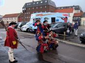 On long term loan from Derby's Charles Edward Stuart Society, Barbara has been lovingly painted blue and its wheel rims treated to a coat or two of Hammerite by Gordon Veitch - attired in Dunbar as a dragoon of course. Barbara is clearly in the hands of the redcoats at Dunbar but the Prince is surely hopeful he will have possession 'ere long.
