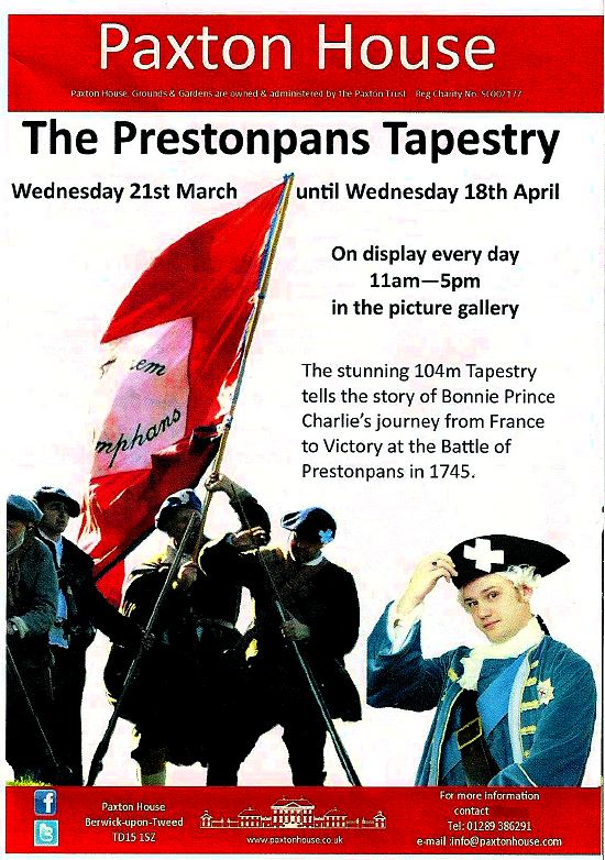Full details are now available of the month long, including Easter holiday period, exhibition and supporting events at Paxton House, just outside Berwick-upon-Tweed. Re-enactments, DVDs on its embroidering, battle gaming, story-telling and more animated aspects all the while ... Great chance to purchase souvenirs too ...