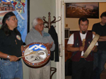 It was the occasion of their initial 'exploratory' visit. The major carving is now formally scheduled for March 2006. Before that date the fullest discussions will have been held locally to detemine the local symbolism to be carved. To date only the Raven and Five Hats symbolism of the Barony have been resolved for inclusion.