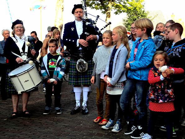 Veere's celebration of completion was a very festive occasion with The Honorary Conservator of the Scottish Privileges in the Low Countries, Neil Wallace, presiding, with Christina Polderman, Secretary Scotland-Veere. Children from Veere were also involved and the 'house piper' was present throughout in his kilt, the Veere District Tartan.