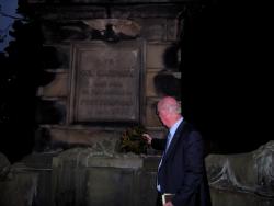 At the Memorial Cairn, erected in 1932 on top road in The Pans and at Gardiner's obelisk erected in 1859, wreaths were laid to remember the so many who were killed on both sides of the battle. For Gardiner the roses were plain red; at the cairn white and red were mingled together.