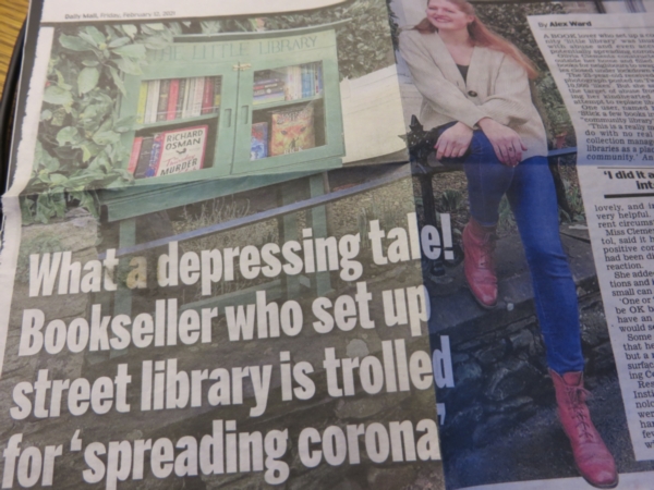 This old press cutting takes on poignancy today … Olivia Clements' story could just as readily have come from Avril's Lockdown Diary but today's focus is on Richard Osman's First Stepping - it's his first novel The Thursday Murder Club whose sales today [or yestereve] passed one million. You can see it in her Little Library display! It's a good read about Care Home Retired Detectives solving cold cases with multiracial virtue signalling but it's not that good a read - although I confess I have advance ordered the next in the series; and he has sold the film rights to Hollywood. He's just a 6'10" nerd with a great intellect and memory …. whose image has been presented and burnished by BBC1 at 5/6pm nightly on a quiz programme called Pointless. Is there more to add? I've not been approached yet for the film or any other rights to Existential Normal or this its continuation ….