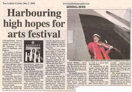 Internationally acclaimed violinist, Tasmin Little is to be one of many major artists involved at the Three Harbours Festival. She will be performing in and about Cockenzie Power Station which has fantastic indoor acoustics!