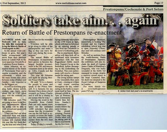 The accepted theory must be that everyone likes to rehear a story they already know. It's something we loved as children and it seems to be in our DNA. Whether that's right or just maybe, the Battle Trust sees its annual re-enactmemnts as a significant moment both for teaching some crucial Jacobite/ Hanoverian history that was written hereabouts, and for honouring the Bravura of Youth. Bonnie Prince Charlie was just 26 years of age and here he was taking on and defeating the Scottish establishment in our town, and de facto suspending the Union for a few heady weeks throughout October 1745. And his challenge for the throne of his grandfather very nearly succeded.