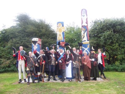 As pictured below, the re-enactors could not resist gongoozling the three poles, and the Prince accompanied by Lord George Murray, offered their own best wishes and hurrahs for the park's future - plus congratulations to ELIS's carvers!