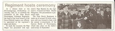 ... from Colonel-in-Chief Martin Margulies, and prepares to pipe the Regiment to Dinner at The Prestoungrange Gothenburg where Kate Hunter's fine mural of Great Panners of Old in the Thomas Nelson Suite can be seen behind him.