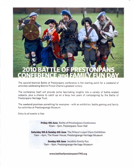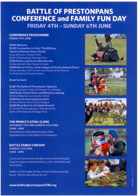 This 2nd Biennial Scottish Battlefields Conference convened in The Pans is something unique and will always be unpredictable. Friday June 4th offers serious and enjoyable presentations and debate chaired by Herbert Coutts in the Town Hall; Saturday & Sunday see a Clan Exhibition at the Museum Power House; and Sunday is Funday all across the Museum for youngsters.