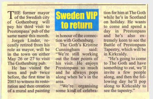 May 26th/27th was the third occasion that Jorgen Linder, until recently Lord Mayor of Swedish city Gothenburg, has visited The Pans with his wife Lisbeth and joined the community at The Prestoungrange Gothenburg.