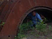 The trail then led to Sam Burns' Yard where in front of the new mural of Sam and his heirs the Yard's history was recounted by Gordon Burns and John Lindsay.