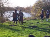 Once again, the Chairman of South Derbyshire Council invited the Battle of Prestonpans Heritage Trust to lay a wreath at the memorial cairn by the Trent at the conclusion of hostilities, which Baron Prestoungrange was pleased to do. The Chairman, Michael Bale, a former Lord Mayor of Sheffield himself a redcoat re-enactor, family and friends adjourn to quench their thirst.