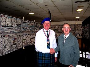 November 25th/ 30th, including St Andrew's night which will be our finale, is decision time, and to raise the tempo this time and to sponsor the requisite awareness of our Diaspora project, the Battle of Prestonpans Tapestry has been brought along too. The exhibition not only gives Scots in Corby and more the chance to see what our first great Pans tapestry looks like. It's also an appetiser for potential stitcher volunteers. And that's certainly working! Upwards of a dozen stitchers and group members have already expressed interest - serious movers and shakers ready to deliver. School groups are coming too ...