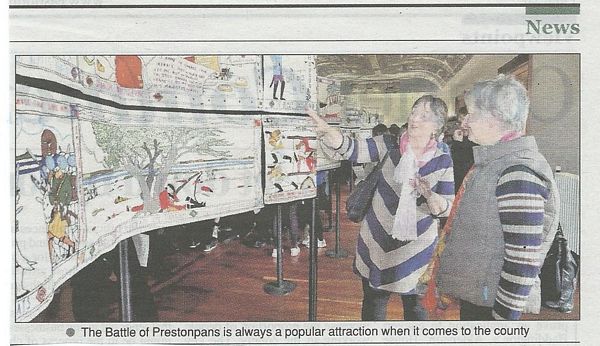 Discussions have proceeded slowly, too slowly say the embroiderers, to find a suitable location for the 104 metre Prestonpans Tapestry, completed in July 2010. It's been on a outstandingly successful tour to nearly 50 locations in Scotland, England and France attracting some 300,000 visitors. It will next be in Oban for their Fasanta Festival on November 1st and 2nd.
