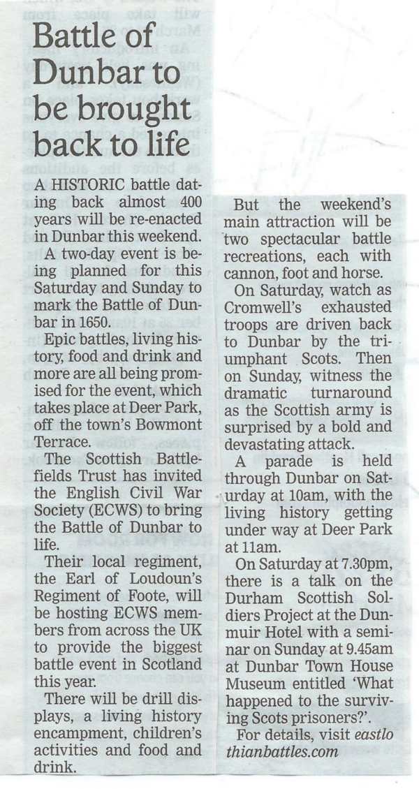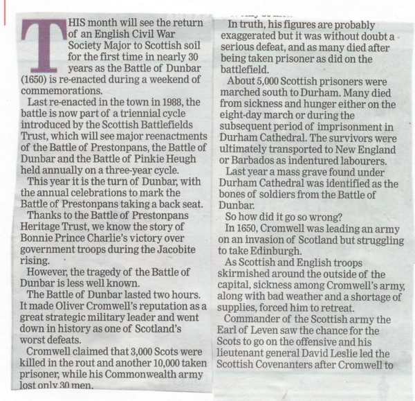 Dunbar 1650 battle story retold - as the press reports from the field ..