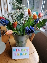 Importantly, it's cousin Joan Waters birthday in Beckenham, And Yes, she's 90 today and as cheerful as ever she has been living her quiet life with Maurice and daughter Susan in Beckenham and still busy with church life across the road. Here's trusting our wee gift of flowers and our card got through on time; and tonight Bryan and Anne will be phoning her from Edmonton. When our father died in 1941 Joan's dad, Uncle Alan, gave mother many a helping hand living close by in Sydenham as we did - us on Burghill and them on Tansfield Roads.