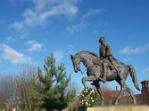 'Tis good to report that the Prince was neither eventually unseated or removed in Derby from the excellent location he has on Derby's Cathedral Square - looking south but with his horse heading north.