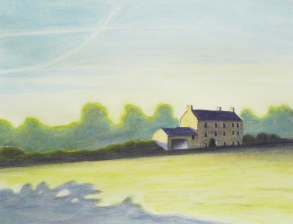 ...and of course Baron Julian of Dolphinstoun has included a Scottish Saltire in the sky as he looks and paints across The Dip to The Grange, immediately to the right hand side of the chestnuts shown.