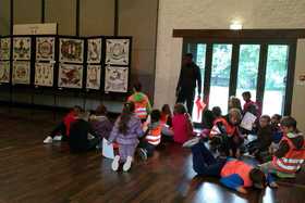 'The Boussy Saint Antoine exhibition has opened today at 2 of its 3 venues here. One of them is an amazing Retirement Home which is like a modern luxury hotel with a beautiful entrance hall. The residents are enjoying the amazing spectacle of the panels. We had the extra challenge of ensuring that residents in wheelchairs and those with support staff could get through and that any rescue crew would be able to clear the place easily. We had a test run with a lady who used a zimmer frame to see if she could get round the back to see the other half of the Australian panels and I had to push the piano and the 6 foot vase along a bit to enable her to get past. Everyone is enjoying it, residents; staff and visitors.