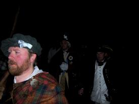This was the fourth year of the re-enactment of the Highlanders' night march along the Riggonhead Defile and the second occasion on which marchers were treated to a fine sunrise. The last occasion was the first re-enactment in 2007. But this year the moon shone brightly too. And perhaps that helped the redcoat pickets spot and challenge them ...