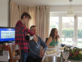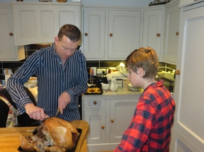 Indeed it's the very pudding crafted on Stir Up Sunday by the Milton Crew and Julian gives Elliot his 'first' lesson on how to carve the turkey before turning his attention to serving the Cava; as elder brother Henry relaxes on the chaise longue in his new North Face climbing kit!