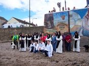 It was the Arts Festival's great pleasure to welcome the intrepid 10 miles 'walkers' from Newbattle Abbey College when they arrived on The Gothenburg foreshore in Prestonpans. As the press cuttings below tell, the walk followed the old route taken by Cistercian monks for many hundreds of years from 1189 until the Reformation and the closure of the Abbey.