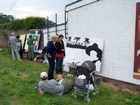 To get his hand in, Tom Ewing was appointed Director for the launch of our own Annual Murals Fest in Prestonpans on June 2nd/ 3rd 2007. The setting for this first occasion was most fittingly Cuthill Park, with its magificent views across the Forth to Leith and Arthur's Seat. And it is no secret that it is the Prestoungrange Arts Festival's ambition that Cuthill will henceforth always serve as home-venue for the event in the coming years. Despite anxities about forecast rain, none came until 3.30 pm on Sunday by which time most of the work had been accomplished.