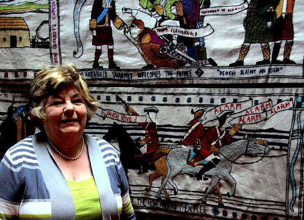 The final weekend saw Prestoungrange Players at Paxton House led by Ros Parkyn [pictured above & below] and the exhibition also saw more than a few of the stitchers looking in - Vanetta Evans was captured standing [immediately below] before her own artwork!