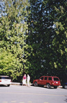 Visiting Chemainus again on September 7th [where the inaugural Global Conference was held in 1998], Prestoungrange and Lady Prestoungrange along with on-the-ground co-ordinators Dr Karl Schutz and Anne Wills, met Jon Lefebure, the Mayor of Chemainus. Jon and his wife Marlene confirmed they are ready as soon as the logistics are properly organised to provide 2 x 40' red cedars for shipping to Scotland with their bark removed. The felling by the City's Forester will be a photo-opportunity for the Chemainus press as will the trees' preparation and transportation to the docks. [ Illustrated below are the Mayor (left) and Prestoungrange heading for the woods and three perspectives of the red cedars they found.]