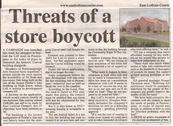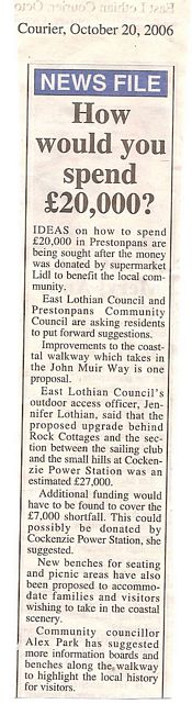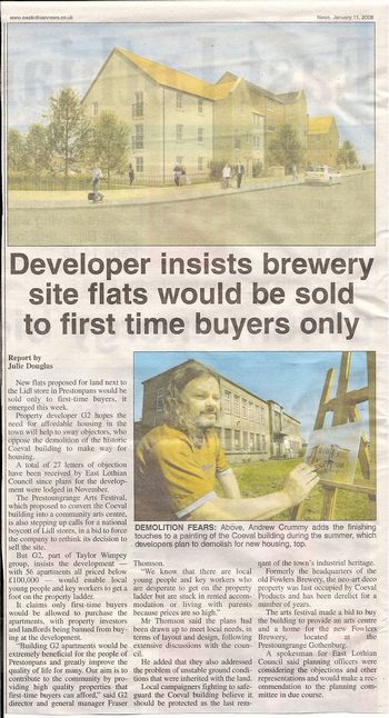 It seems pretty clear that they never for one moment had any intention of honouring the retention of the Old Fowler's HQ. It was just stated as a deliberate porkie in their Design Principles and Solution. And that porkie was supplemented with a Planning Gain of £20,000 for Prestonpans Community Council in 2006 - which had opposed the initial planning application. See the report below from East Lothian Courier dated October 20th 2006.