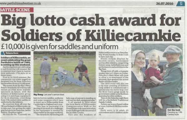 It's a pleasure to record that local historians and community groups in Killiekrankie, who started their re-enactment series some three years ago, have now gained substantial financial support that guarantees an even brighter future. they've received a Lottery Awards for All grant of £10,000 as reported below.