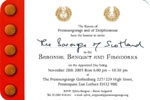 Invitations have just now been posted to the entire Baronage of Scotland to invite them to a Banquet at 6.00 pm on November 28th at the Prestoungrange Gothenburg. The Baron Sergeand and Chef Andrew Laurie have all matters in hand and there will be a major fireworks display over the Firth of Forth at 10.30 pm.. Craig Allan at Fowler's Ales microbrewery has been charged with ensuring real Prestonpans ales do proper justice to this landmark occasion.