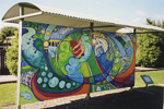 SMARTA and sister organisation MuralFest presented their first outline plans for 2008 following their nomination in Ely to the Baron of Prestoungrange, Vice President of the Global Association, when he visited on behalf of Dr Karl Schutz November 14th & 15th 2004 in Sheffield. Local politicians led by the Kentish Mayor and local councillors all pledged their support as did local businessmen responsible for motel accommodation [with new murals of their own, the first shown below] and other major tourism attractions such as Brian Inder's Tasmazia with its lavender farms, mazes and Crackpot Village. Meeting in the Sheffield Hotel the full SMARTA Committee membership agreed to launch the Global MuralsFest in parallel with their own outstandingly successful regional fest – details to be refined at Bowen and Bishop in 2005 and at Prestoungrange in 2006.