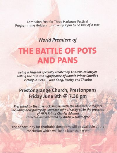 The Battle of Prestonpans Heritage Trust is delighted to announce the World Premiere of its first major Living History Through the Arts production: The Battle of Pots and Pans.