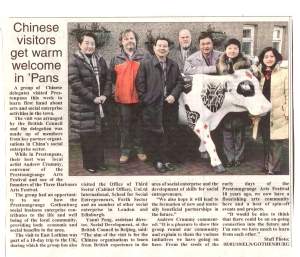 Andrew Crummy, second from left, once again welcomed a professional group to The Prestoungrange Gothenburg on Tuesday February 2nd. The British Council had asked the Arts Festival to share its goals and development over the past decade with a team visiting the UK from China. Each of the visitors has social enterprise responsibilities back home there.