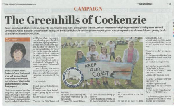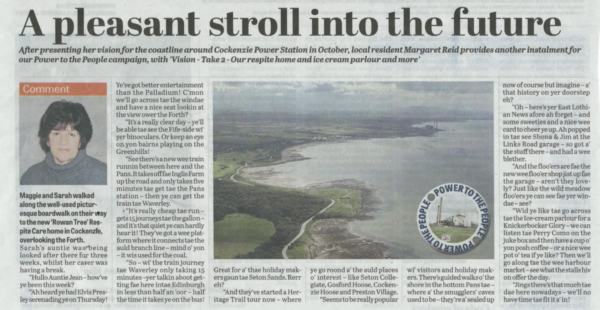 Our continuing thanks to East Lothian News for giving the opportunity for Campaigners to get they views and hopes more widely read across the community.
