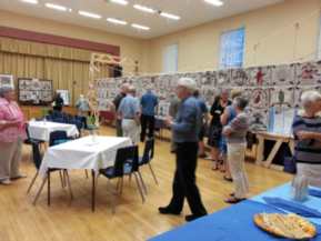 The panels created in Toronto and additional artworks, and their stitchers, have their own unique on-stage location - seen below left; click to enlarge photograph..