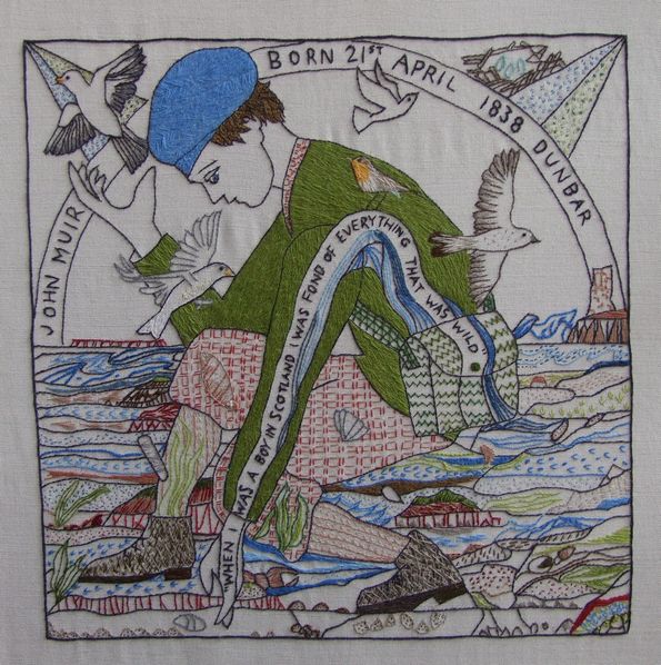 April 17th is a big moment this year as the 'new' comprehensive John Muir Trail is officially opened by First Minister Alex Salmond - in Dunbar. The Museum there in his old home is offering an exhibition of all manner of artworks and artefacts associated with the world's greatest/ earliest conservationist. We'll be there from the Prestoungrange Arts Festival with all four of the completed John Muir panels from the Scottish Diaspora Tapestry. [It's a preview of them because the premiere isn't until May 31st during the 3 Harbours Festival at Prestonpans Community Centre.]
