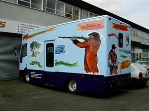 Many are familiar with the East Lothian Mobile Library Service and will fondly await its regular visits. Last year one of its older 'P Reg' vehicles was taken out of service and sold to a dealer in Midlothian where it was later spotted by Executive Trustee Kristine Cunningham. And perhaps not surprisingly it quickly found its way into the hands of Bonnie Prince Charlie's Supporters in The Pans as their mobile 'Showman's Trailer'. It will be out and around East Lothian until 2011 when the Trust plans to open its major 'Wow Factor' Visitor Centre at Meadowmill.