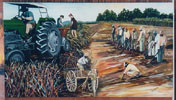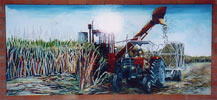 The coffee stop on Day 1 was at Sarina and revealed five fine murals painted around a central services facility in town, depicting the life of a sugar planter, which is the area's major industry. They appear below. All except the first are signed by Jenni Kirkwood alone; the first also has Donna Wright's signature as well.